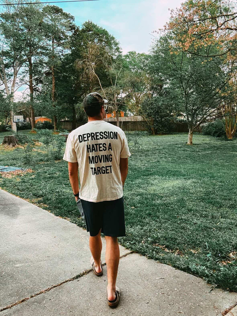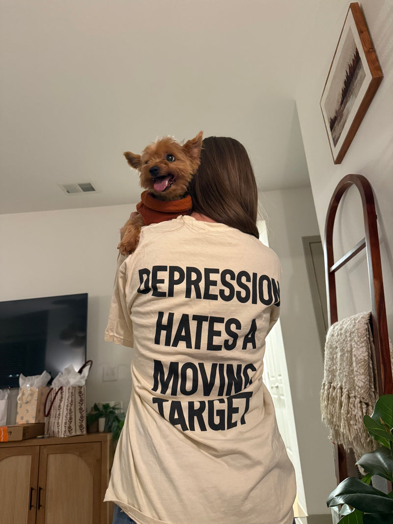 Depression Hates a Moving Target T-Shirt – Graphic Edition (Vintage White)